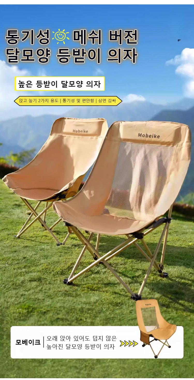 통기성 메쉬 아웃도어 달모양 등받이 의자
